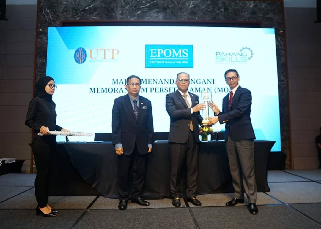 Beliau berkata demikian ketika berucap pada Majlis Menandatangani Memorandum Persefahaman (MoU) antara Pengarah EPOMS Datuk Mohd Pathil Ahmad, Pengarah Eksekutif Pahang Skills Mohd Yusri Mohd Nor dan Naib Canselor Universiti Teknologi PETRONAS, Profesor Datuk Ts. Dr Mohamed Ibrahim Abdul Mutalib, semalam.