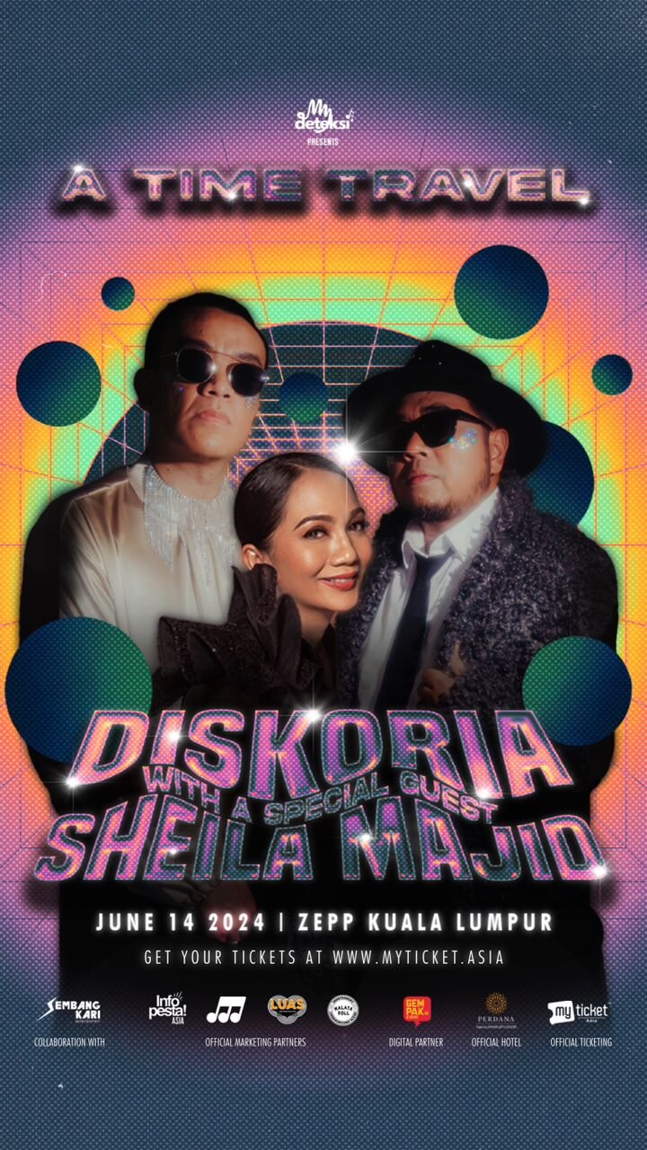 MY Deteksi bersama penganjur Sembang Kari Entertainment dan Tourism Malaysia berbangga membawakan satu-satunya konsert yang akan dibanjiri genre muzik disko nan ‘dilarang diputar di disko’ menerusi A Time Travel Diskoria With A Special Guest Sheila Majid.