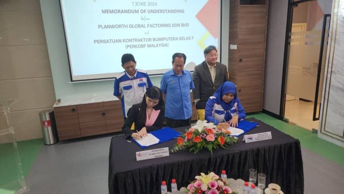 KUALA LUMPUR – Planworth Global Factoring Sdn Bhd (Planworth) menjalinkan Perjanjian Persefahaman (MoU) dengan Persatuan Kontraktor Kelas “F” Bumiputera Malaysia (PERKOBF Malaysia) bagi menyalurkan dana pembiayaan untuk membantu kontraktor kecil menjalankan kerja-kerja yang diperolehi daripada kerajaan, agensi kerajaan, Syarikat-syarikat Berkaitan Kerajaan (GLC) dan juga syarikat swasta yang terpilih.