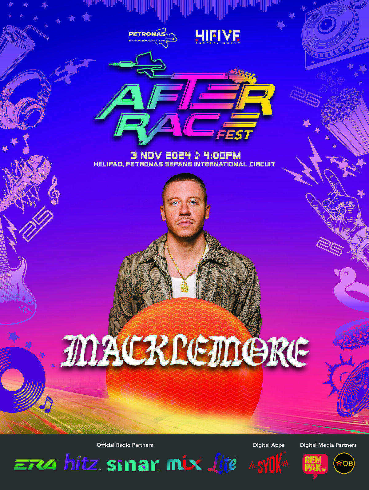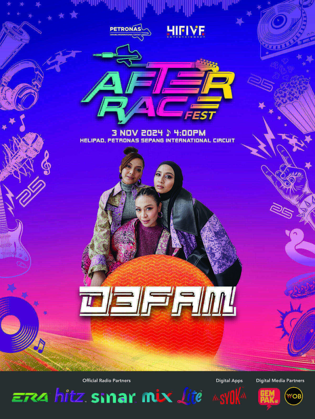 AFTER RACE FEST bakal diadakan di lokasi terbaik iaitu Helipad, PETRONAS Sepang International Circuit pada 3 November bermula jam 4 petang sehingga tengah malam.