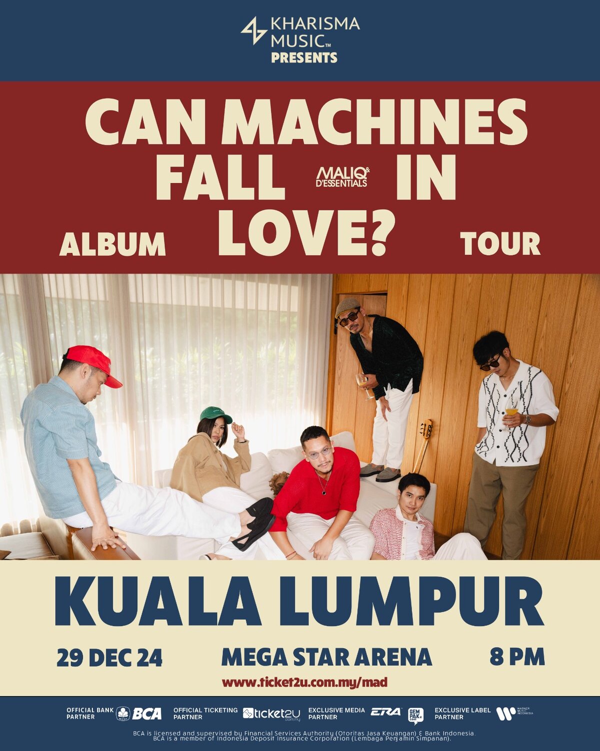 KUALA LUMPUR – Kharisma Music sekali lagi mempersembahkan sebuah pengalaman muzik yang luar biasa, band jazz dan soul terkenal Indonesia, Maliq & D’Essentials dalam sebuah konsert digelar ‘Can Machines Fall In Love? Album Tour’ yang dijangka berlangsung pada 29 Disember depan bertempat di Megastar Arena, KL bermula jam 8 malam.