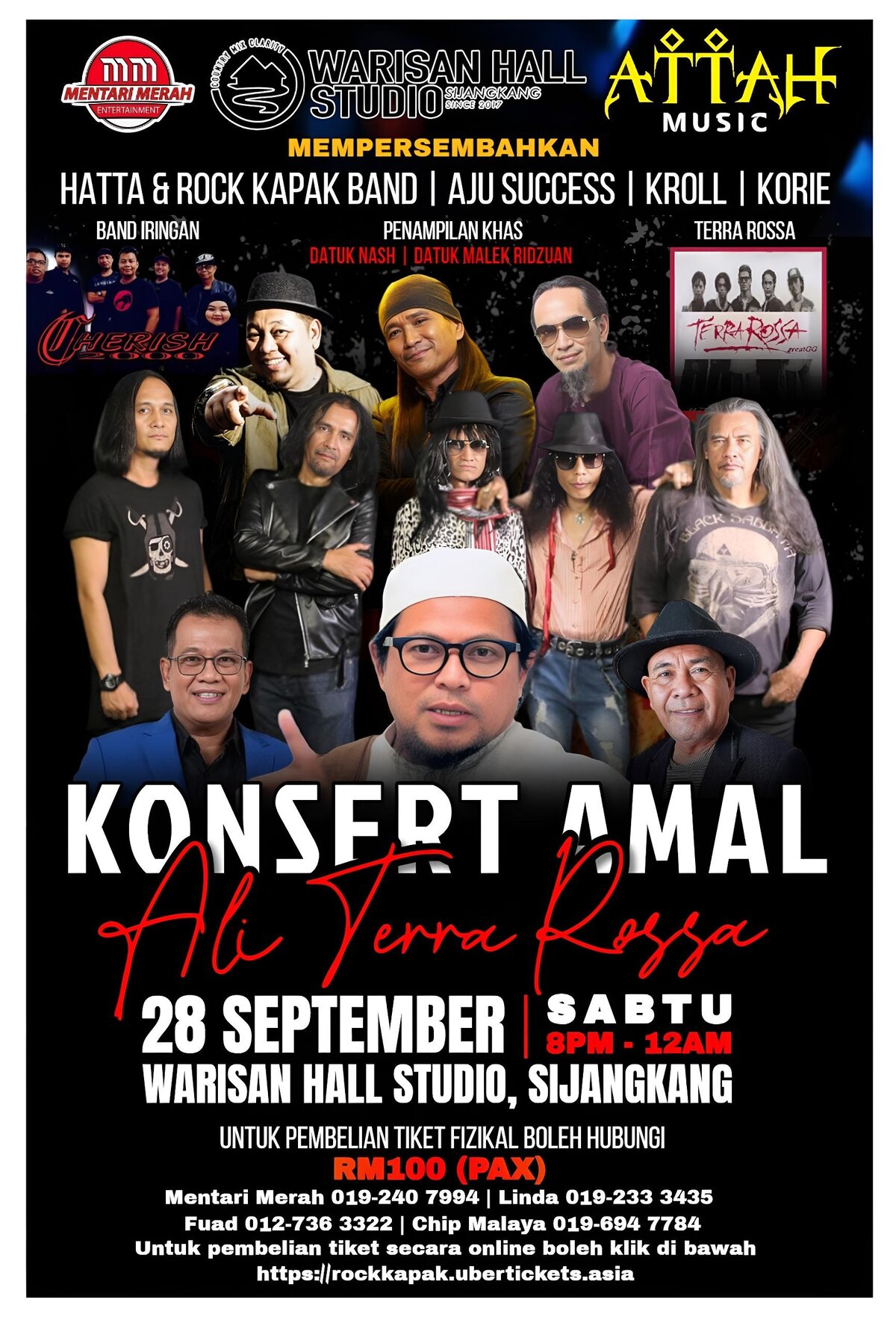 Tiket berharga RM100.00 seorang boleh didapati melalui (MM 019-2407994), (Fuad 012-7363322), (Chip Malaya 019-6947784), (Kuna 016-8050202) dan (Linda 019-2333435).