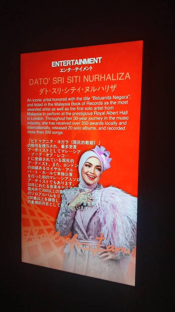 Hall of Fame Malaysia di Pavilion Malaysia direka sebagai pengalaman budaya menyeluruh, yang bukan sahaja menampilkan sejarah dan pencapaian artis-artis tersohor negara, malah mengajak pengunjung untuk menyelami kisah di sebalik perjalanan seni mereka menerusi penceritaan visual dan elemen audio interaktif.