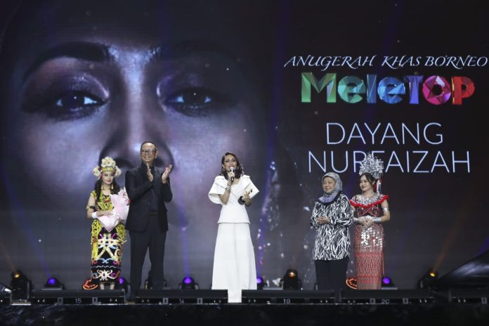 Kemuncak acara menyaksikan penyanyi tersohor tanah air dan kebanggaan Sarawak, Dayang Nurfaizah, menerima Anugerah Khas Borneo MeleTOP.