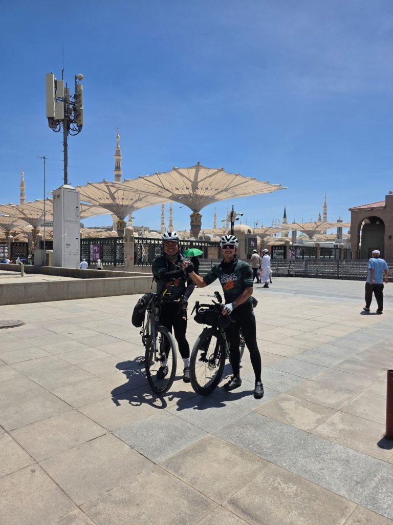 “Tak sangka, impian ini menjadi kenyataan apabila menaiki basikal dari Malaysia dan menamatkannya di perkarangan Masjid Nabawi. Kini kami amat teruja untuk menziarahi Makam Rasulullah SAW,” katanya.
