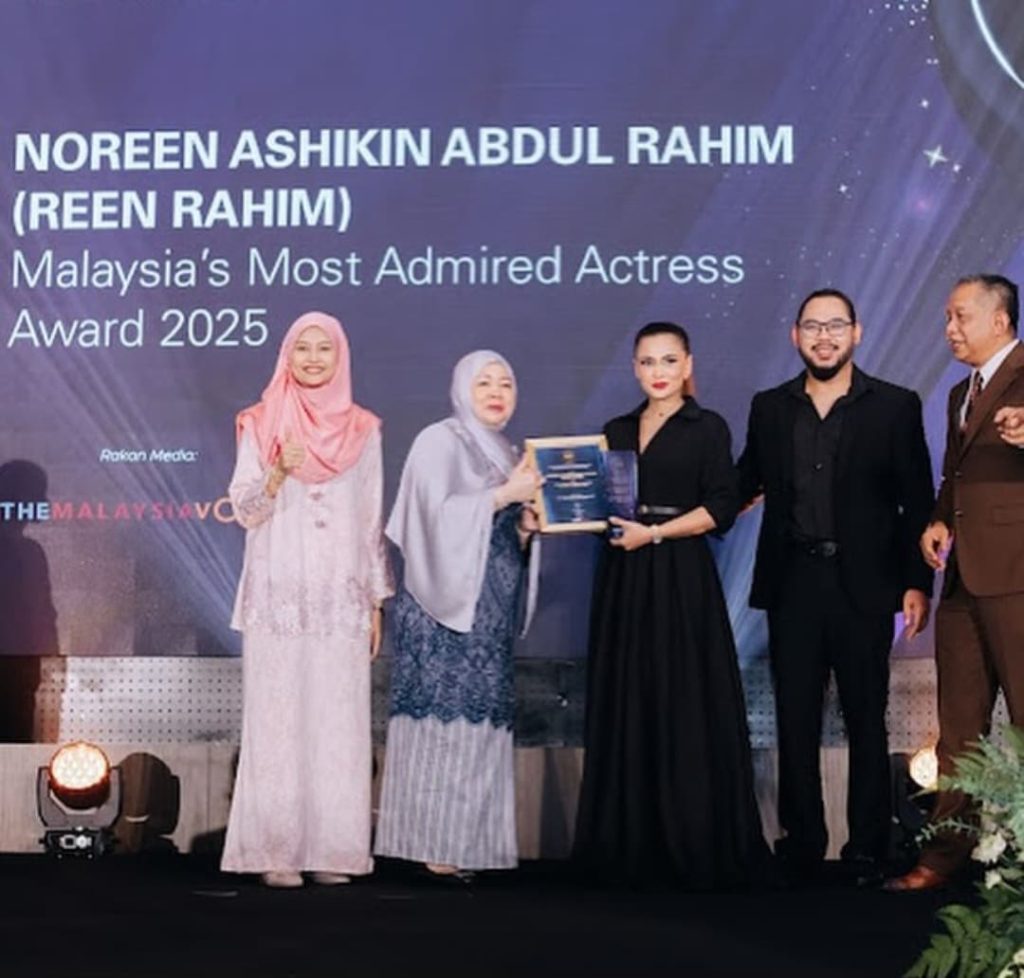 Dalam majlis sama, Reen turut menerima Anugerah Aktres Paling Dikagumi Malaysia 2025 yang disifatkan sebagai penghargaan pertama sepanjang lebih 15 tahun mengabdikan diri dalam dunia seni.