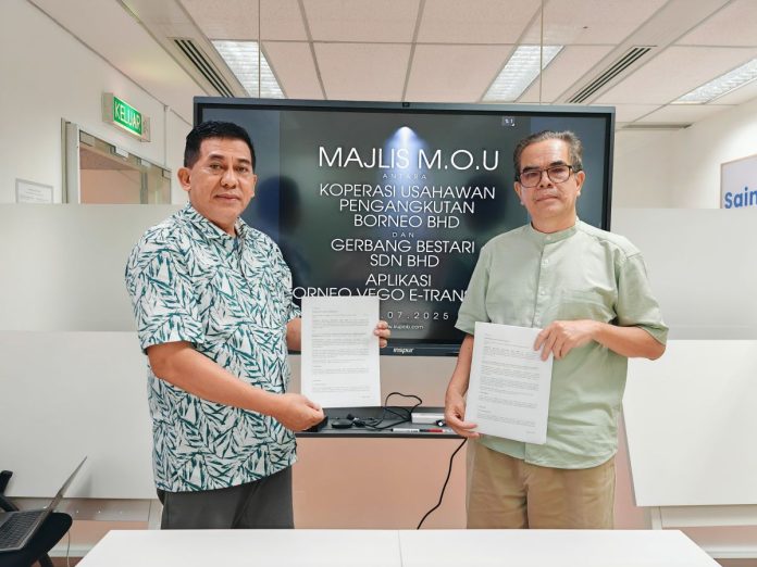 KUALA LUMPUR – Usaha memperkasa ekosistem pengangkutan digital di wilayah Borneo menyaksikan satu langkah signifikan apabila Koperasi Usahawan Pengangkutan Borneo Berhad (KUPBB) menandatangani Memorandum Persefahaman (MoU) bersama Gerbang Bestari Sdn. Bhd. bagi melancarkan sebuah platform e-hailing pertama yang berasaskan koperasi tempatan, dikenali sebagai “Borneo VeGo E-Transport.”