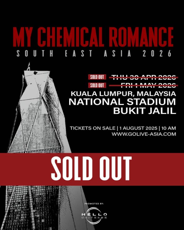 KUALA LUMPUR – Fenomena My Chemical Romance terus mencetuskan gelombang luar biasa apabila kumpulan ikonik itu mencatat sejarah di Malaysia dengan kejayaan menjual habis tiket untuk dua malam konsert mereka di Stadium Nasional Bukit Jalil.