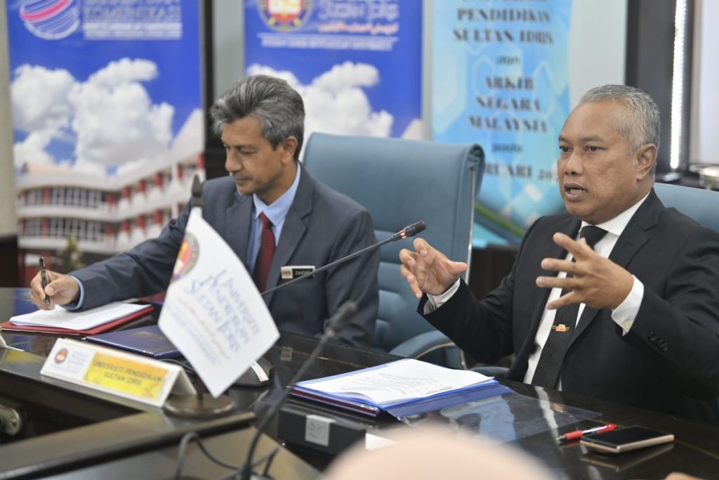 TANJONG MALIM – Universiti Pendidikan Sultan Idris (UPSI) terus memperkukuh peranannya dalam pemartabatan ilmu dan warisan negara apabila memeterai Memorandum Persefahaman (MoU) bersama Arkib Negara Malaysia (ANM) dalam satu majlis rasmi yang berlangsung di Bangunan Canselori, Kampus Sultan Abdul Jalil Shah.