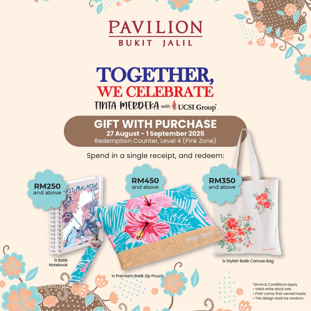 KUALA LUMPUR – Pavilion Bukit Jalil telah menghidupkan semangat patriotik dengan kempen merdeka bertemakan Together. We Celebrate, sebuah pameran seni, fesyen dan budaya yang menggabungkan warisan tradisi serta kreativiti kontemporari.